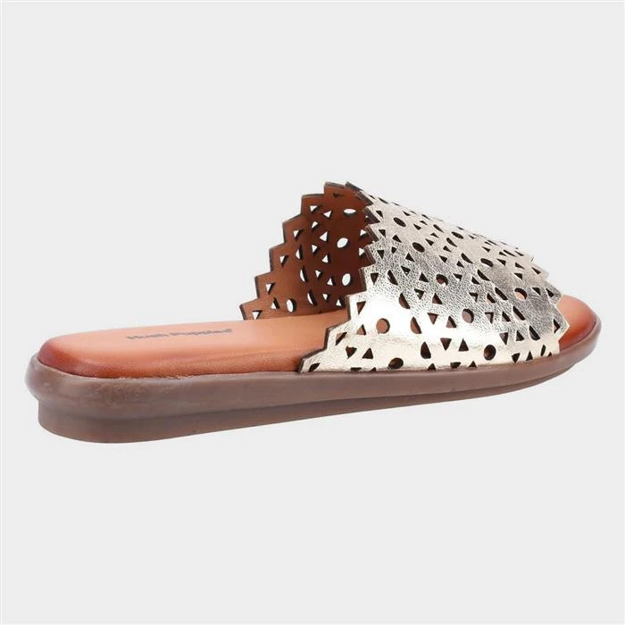 By Hush Puppies, these Bryony womens sandals in gold. Slip into summer in our Bryony mule sandal, featuring quality leather upper with intricate laser cut detail. With a memory foam comfort insole and soft leather lining, this sandal will complement any outfit and keep you on your feet all day long.