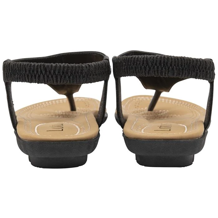 Designed by Lotus, these Orla women’s sandals in black feature a toe post and dazzling diamantes on the upper, adding glamour to these sandals. Their elasticated slingback offers a secure fit, while their cushioned insock provides comfort.