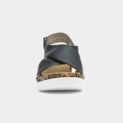 Designed by Rieker, these women’s sandals in navy feature Rieker’s AntiStress technology which provides a padded insole and a gripped outsole to ensure underfoot comfort. Their wedged heel offers additional height, and their slip on design means they are quick and easy to fit.